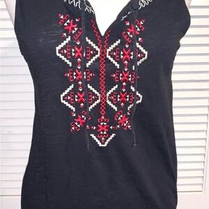 J. Jill Black and Red Embellished Sleeveless Tank Top
