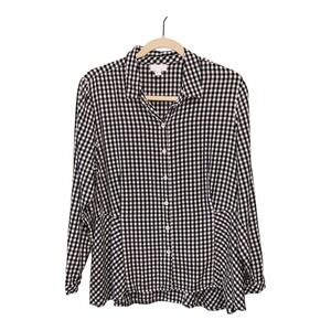 J. Jill Black and White Gingham Button Down 100% Rayon Women’s Top Sz. PLarge