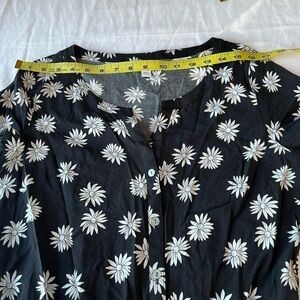 J Jill Black size S Dress Black with White Daisies Button Front Ruffle Pockets