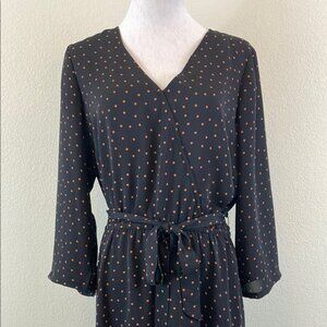 J Jill Black/Orange Polka Dot V-neck Long Sleeve Maxi Dress M