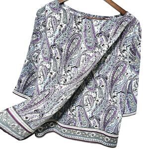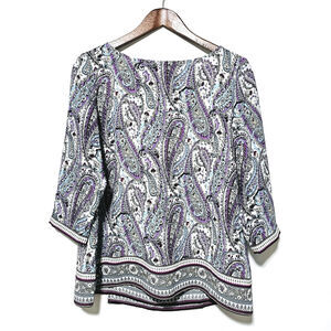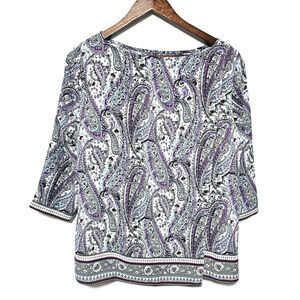 J. Jill Blouse Adara Violet Paisley Wrap Back Top 3/4 Sleeve Multicolor MP