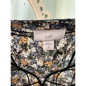 J. Jill Blouse M P Multi Color Floral Button Front Round Neck Long Sleeve Top