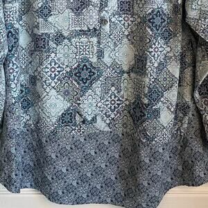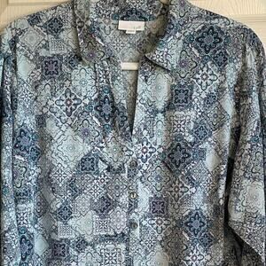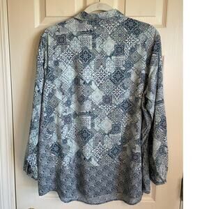 J. Jill Blouse Popover Top Long Sleeves Blue Mixed Print Collar Plus Sz 2X