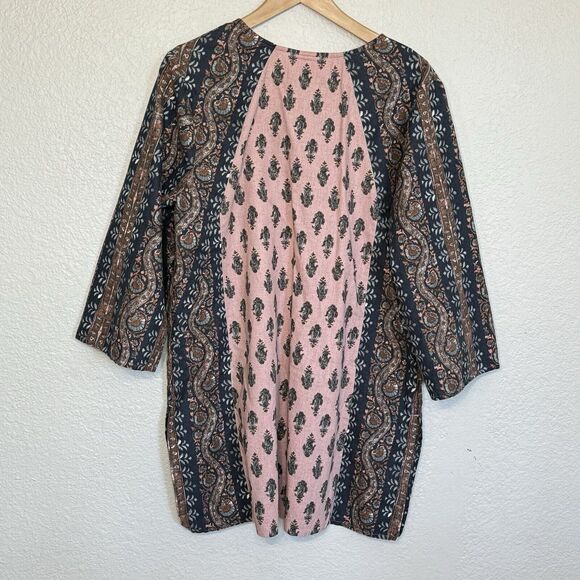 J Jill Blouse Women L Pure Jill Linen Tunic Patchwork Paisley Bohemian Artsy