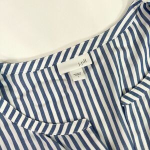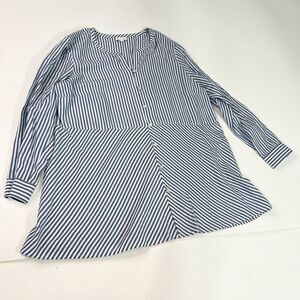 J. Jill Blouse Womens Large Blue & White Striped Button-Up Long-Sleeve Tunic Top