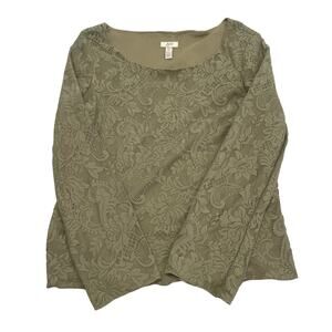 J. Jill Blouse Women's Medium Petite Green Long Sleeve Lace Top
