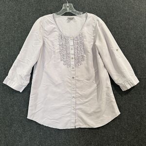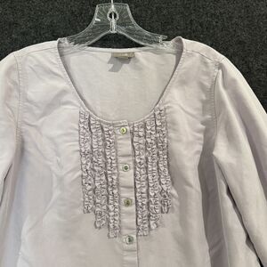 J Jill Blouse Women's Small Light Purple 3/4 Sleeve Ruffle Button Modal Top