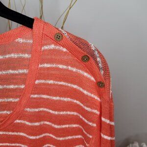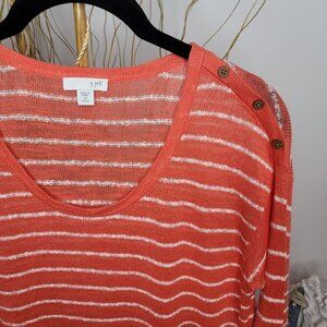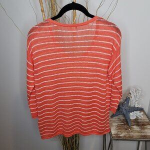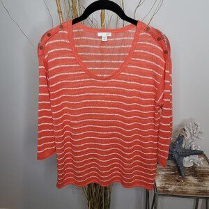 J. Jill 3/4 Sleeve Striped Shoulder Button Knit Linen Blouse