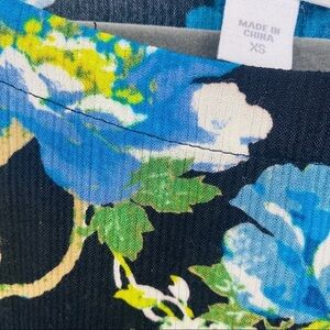 J. Jill Blue Bird & Floral Boat Neck Blouse Sz XS