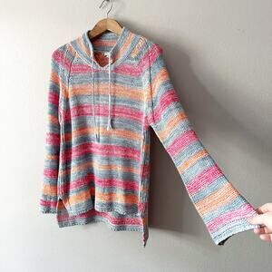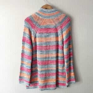 J. Jill Blue Blue/Pink Striped Pullover Cotton Linen Sweater women’s size medium