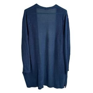 J. Jill Blue Cardigan Sweater Open Front Knit Linen Blend Long Sleeve Size Large