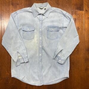 J. Jill Blue Denim Embroidered Button Down Cotton Shirt Women's Size Medium