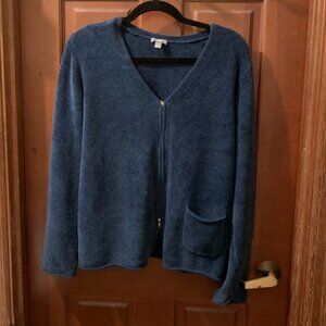 J. Jill Blue Double-Zipper Cozy Cardigan with Pocket - Womens Size L