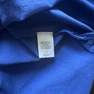 J. Jill Blue Embroidered Split Neck Tunic Top Size L Boho 3/4 Sleeve Royal Blue