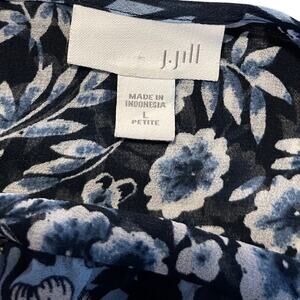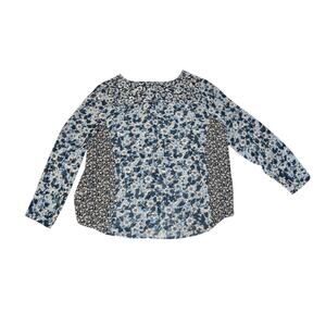 J Jill Blue Floral Blouse Long Sleeve Button Up Keyhole Tie Top Size Large
