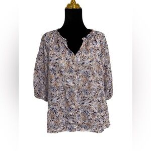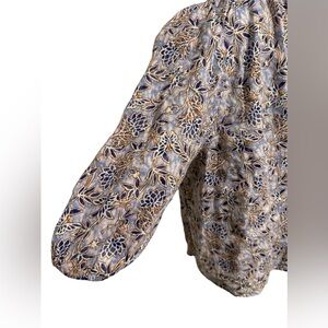 J. Jill Blue Floral Puff Sleeve Blouse Relaxed Fit Medium Petite EUC
