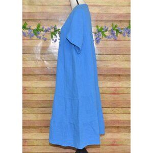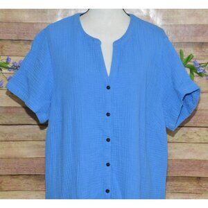 J. Jill Blue Gauzy Button Front Tiered Dress Size XL V-Neck Drop Waist Casual