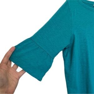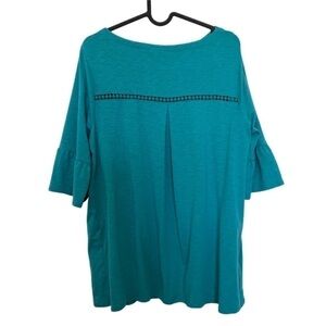 J. Jill Blue Half Bell Sleeve Lace Inset Back Pullover Top Size Medium