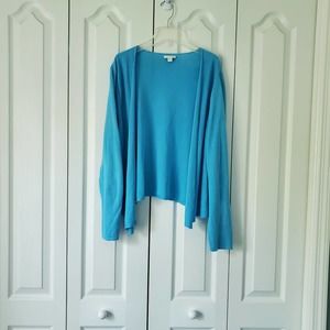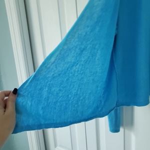 J. Jill Blue Linen Blend Draped Open Front Cardigan L Airy Soft Relaxed Modest