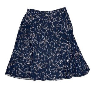 J. Jill Blue Pink Floral A-Line Rayon Midi Skirt Women’s Large