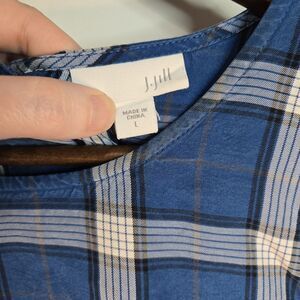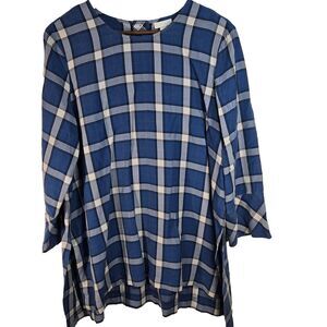 J Jill Blue Plaid Lyocell Mother Of Pearl Accent Tunic Womens Large