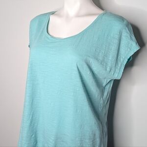 J Jill Blue Scoop Neck Slub Short Sleeve Cotton T-shirt S