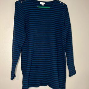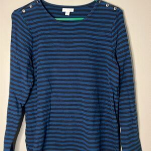 J. Jill Blue Striped Long Sleeve Medium Petite Top