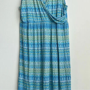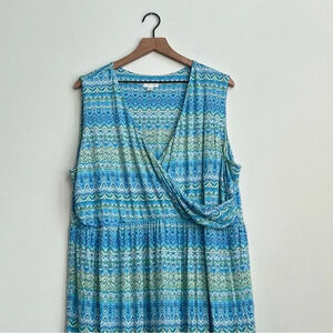 J. Jill Blue Surplice Aegean Island Ikat Print Maxi Dress Stretch Jersey Plus 3X