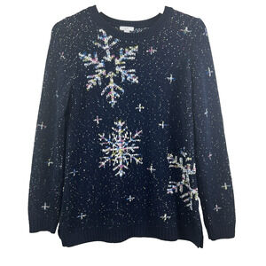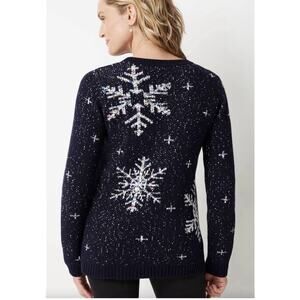 J Jill Blue Tweeded Colorful Snowflake Sweater Small Relaxed Fit Tunic Winter