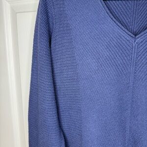 J. Jill Blue V-Neck Knit Sweater Size Medium GUC, no pulls or stains