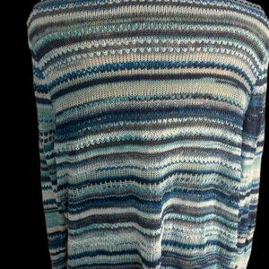 J. Jill Blue and White Striped Textured Open Cardigan. Size Large Great for a cool summer night.