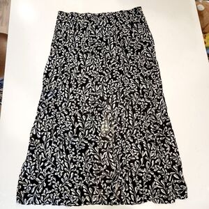 J. Jill Bohemian Boho Flowy Floral Maxi Skirt Women's Medium M Black White EUC