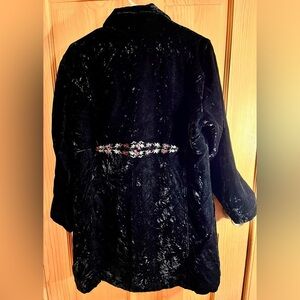 J Jill Boho Chic Black Crushed Velvet Coat Floral Buttons Lined Embroidered Gift