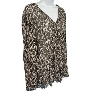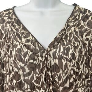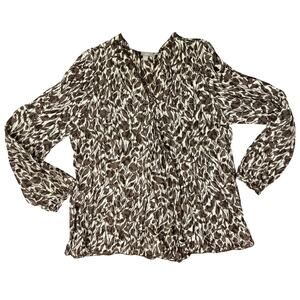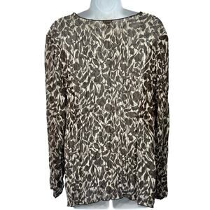 J. Jill Brown Cream Leaf Floral Lightweight Long Sleeve Blouse Top size L Earthy