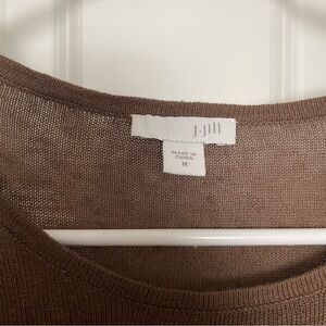 EUC beautiful neutral brown tunic top from J. Jill in a size Medium. This tunic is an open knit, linen blend and has slits up both sides for lots of movement. Might also be worn as a bathing suit cover up. Half sleeves. No stains or flaws!