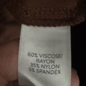 Classic brown pull on pants. Stretchy fabric. Side pockets. Wear them casually or dress them up.