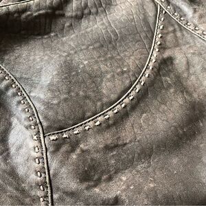 Leather is distressed and buttery soft with thread accents (see pictures)