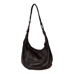 J. Jill Brown Soft Glove Leather Hobo Slouchy Shoulder Bag with Zip Top *Flaw
