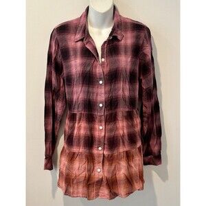 J Jill Brushed Cotton Modal Tiered Plaid Ombre Tunic Size M Medium EUC!!!