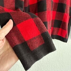 J. Jill Buffalo Check Red Black Oversized Sweater Fall Hayride Winter Christmas