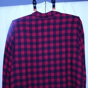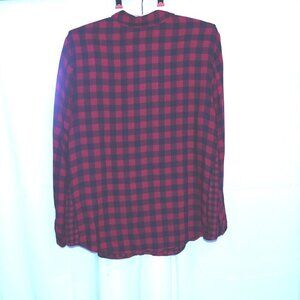 J Jill Buttalo Check Soft Flannel Shirt Women Size XL Roll Tab Long Sleeves, Front Pocket Button Front, Rounded Hem, Cuffs, Red Black Check