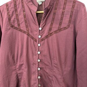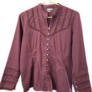 J Jill Burgundy Cotton Stretch Button Up Long Sleeve Career Casual Top Sz XS EUC