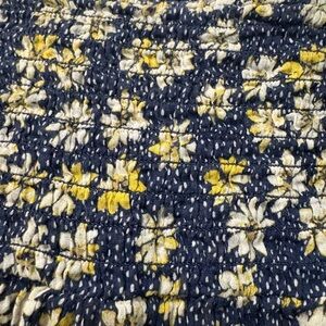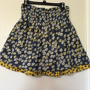 J Jill Butter Yellow and Blue Floral Double Layer Cotton Mini Skirt with Smocked