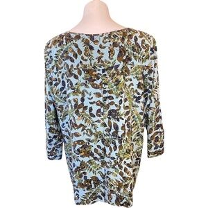 J. Jill Button Back 3/4 Sleeve Fern Leaf Print Blouse Size Large.