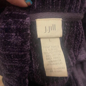 J Jill Button Cardigan Fleece w/velour Back/Trim Women’s Large Dark Purple Plum