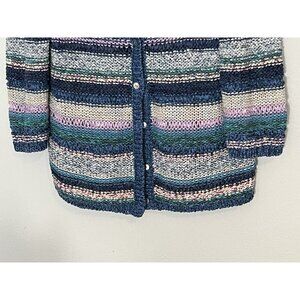 J. Jill Button Down Knit 3/4 Sleeve Striped Cardigan Size Medium