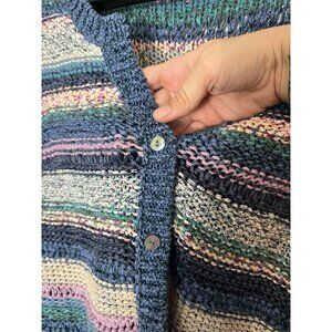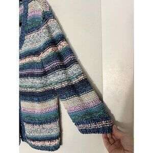 J. Jill Button Down 3/4 Sleeve Multicolor Striped Cardigan.