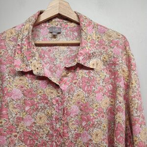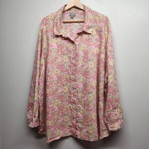 J. Jill Button Down Shirt Women Plus Size 4X Pink Floral Long Sleeve Linen