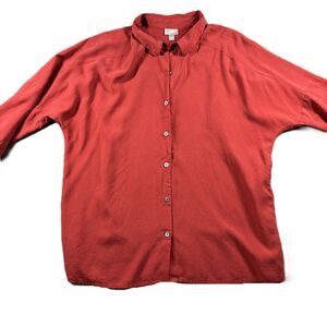 J. Jill Button Front Shirt Top 100% Silk Burnt Orange Large Petite LP I106