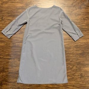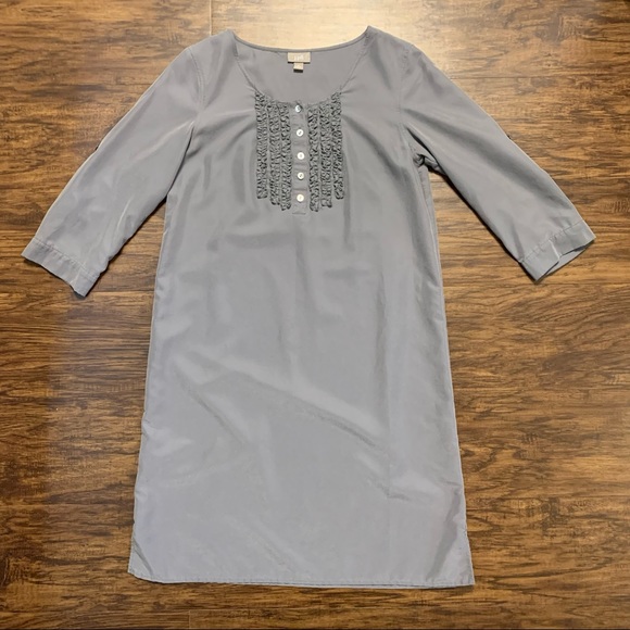 J. Jill Button Ruffle Front Shirt Dress Size XS Gray. 67% Modal 33% Polyester. Sleeves can be worn rolled up or down.